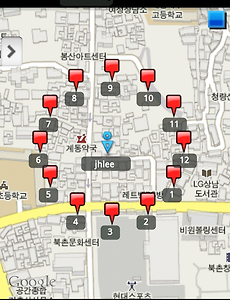 분류 전체보기98 안드로이드 마커 그리기 List ivList = new ArrayList(); private void showItemizedOverlay(List commList) { List overlays = mapView.getOverlays(); overlays.clear(); for(int o=0; o 0) { // Draw the sweep. Radius is determined by how long ago it started long sweepDifference = now - mSweepTime; if (sweepDifference > 9); canvas.drawCircle(centerX, centerY, .. 2014. 1. 7. 안드로이드 overlay event overlay에 이벤트를 주기 위해서는 onTap 메소드를 재정의하면 되지만 내가 사용하려는 방법(QuickAction) 은 적용되지 않았다. QuickAction을 사용하기 위해서는 agrument로 view를 넘겨줘야 하는데 overlay를 클릭시 넘겨주는 view를 mapview로 설정하면 mapview의 가장자리에서 quickAction이 적용이 되었다. 그래서 다른방법으로 overlay의 위에 overlay와 같은 사이즈의 투명한 이미지뷰를 올려놓은다음 이미지뷰를 클릭하니 원하는 대로 나왔다. // 위치 설정 Double commLat = Double.valueOf(item.lat) * 1E6; Double commLng = Double.valueOf(item.lng) * 1E6; GeoPoin.. 2014. 1. 7. 안드로이드 삼각함수 이용하여 원 그리기 안드로이드 프로그래밍을 하던 중 로그인한 사용자를 중심으로 내 주위에 있는 친구들의 목록을 지도에 표시를 해야 할 때가 있다. 그럴때는 삼각함수를 이용하여 로그인한 사용자를 중심으로 원을 그리듯이 표시하면 깔끔하고, 보기에도 좋다. 아래는 소스이다. int radius = 50; double angle = ((i+1)*(360/size))*(Math.PI/180); double x = (radius * Math.cos(angle)); double y = (radius * Math.sin(angle)); String sponTaneousName = (String)sponTaneousArr[i]; Point sponTaneousPoint = new Point((int)x, (int)y); GeoPoint t.. 2014. 1. 7. 안드로이드 흑백 사진 만드는 법 안드로이드 작업을 하던 중 online 인 사용자와 offline인 사용자의 구분을 해야 할 필요가 생겼다. 그래서 online인 사용자는 profile image를 color로 offline인 사용자는 profile image를 gray(흑백)로 표시가 되도록 하였다. 아래는 소스이다. public static Bitmap getGrayImage() { int width, height; height = bmpOriginal.getHeight(); width = bmpOriginal.getWidth(); Bitmap bmpGrayscale = Bitmap.createBitmap(width, height, Bitmap.Config.RGB_565); Canvas c = new Canvas(bmpGraysca.. 2014. 1. 7. 이전 1 ··· 21 22 23 24 25 다음